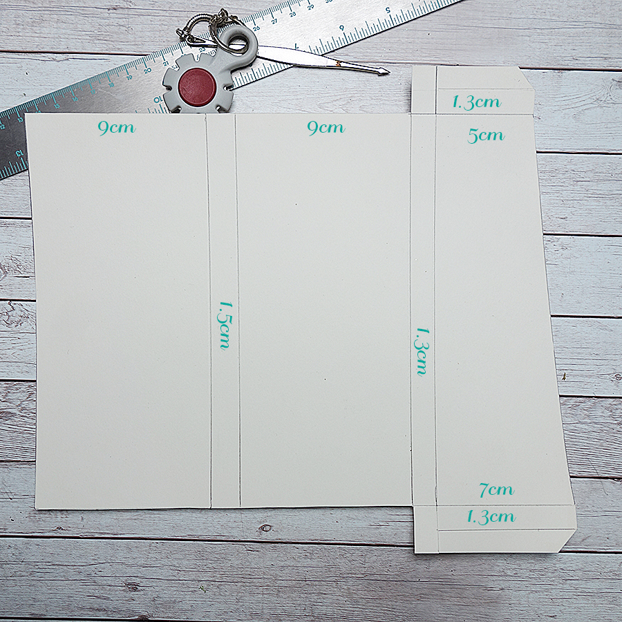 Wymiary, które podałam pasują do najczęściej spotykanej wielkości czekolady. Możecie je dowolnie modyfikować, pamiętajcie jednak, żeby grzbiet pudełka był 2mm szerszy od wysokości boków "kieszonki". Wtedy po obklejeniu bazy ozdobnymi papierami będzie się swobodnie, równo zamykała.